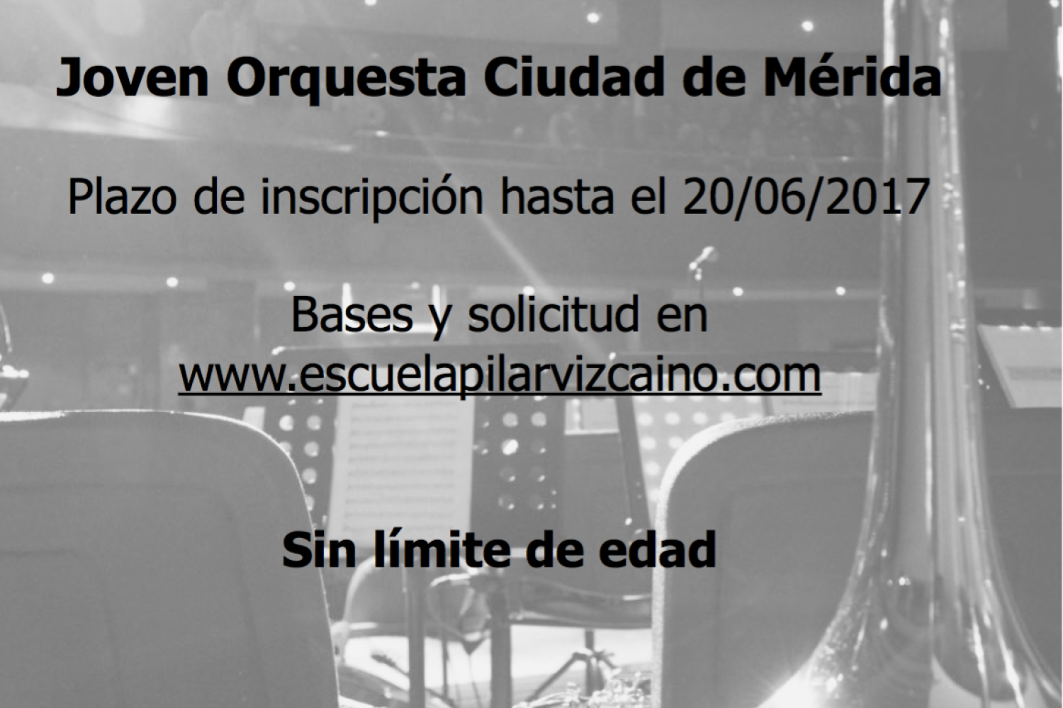 La Joven Orquesta Ciudad de Mérida organiza, junto a la Escuela Pilar Vizcaíno, el II Campus Musical Extremeño del 19 al 28 de Julio de 2018.